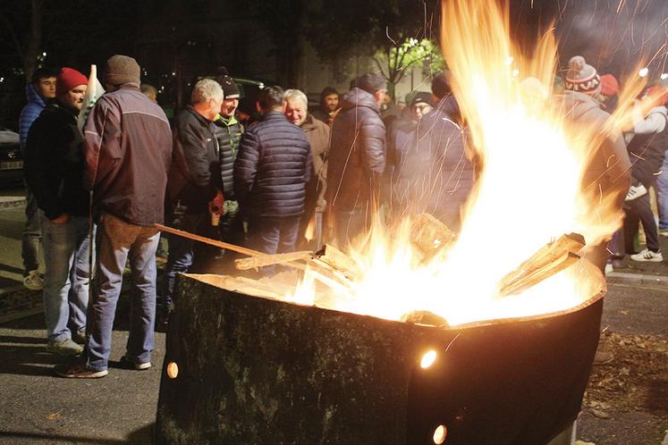 Dans une remorque remplie de bois, un agriculteur pioche quelques bûches pour alimenter le brasier. Ce lundi, les syndicalistes de la FDSEA et de JA ont rallumé un feu de la colère devant la sous-préfecture d’Oloron-Sainte-Marie. Une soixantaine d’adhérents, venus parfois en tracteur des cantons du Haut-Béarn, manifeste dans le calme. Leurs revendications restent les mêmes : opposition à l’accord commercial entre l’UE et le Mercosur, réforme de la PAC, et taxe sur les engrais azotés (MACF).